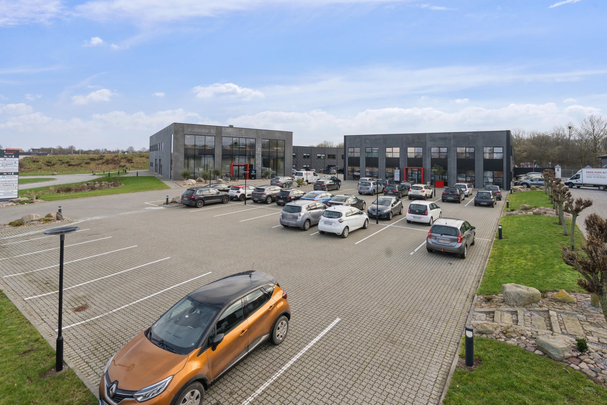 Udenomsarealerne er udlagt til grønne områder, samt et stort parkeringsareal, til fri afbenyttelse for ejendommes lejere.