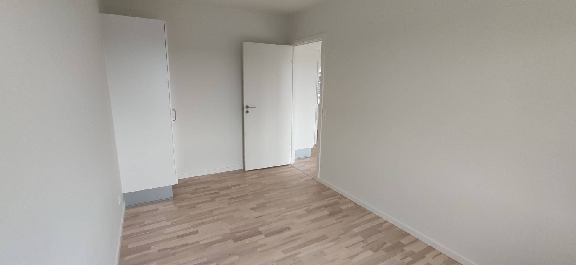 Der er soveværelse og 2 ekstra værelser, alle med indbyggede skabe. Lejligheden har adgang til områdets store fællesareal med dejlig lejeplads, samt egen parkeringsplads.
